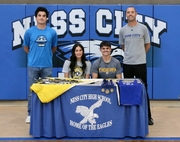 Two Ness City athletes signed "National Letter of Intent" to continue their athletic careers with Fort Hays State University. Taegin Liggett (track) and Broxton Gall (cross country and track)